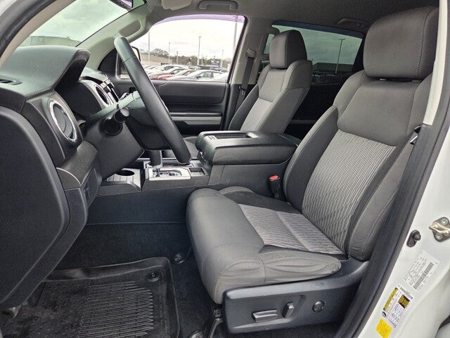 Tundra SR5, 4D CrewMax, i-Force 5.7L V8 DOHC 32V LEV, 6-Speed Automatic Electronic with Overdrive, RWD, Black Cloth, 18 x 8J Styled Steel Wheels, 3-Passenger Front Bench Seat, 4-Wheel Disc Brakes, 9 Speakers, ABS brakes, Air Conditioning, AM/FM radio: SiriusXM, Apple CarPlay/Android Auto, Auto High-beam Headlights, Auto-dimming Rear-View mirror, Brake assist, Compass, Delay-off headlights, Driver door bin, Driver vanity mirror, Dual front impact airbags, Dual front side impact airbags, Electrochromic Rear-View Mirror, Electronic Stability Control, Emergency communication system: Safety Connect with 1-year trial, Exterior Parking Camera Rear, Fabric Seat Trim, Front anti-roll bar, Front Bucket Seats, Front Center Armrest w/Storage, Front fog lights, Front reading lights, Front wheel independent suspension, Fully automatic headlights, Garage door transmitter: HomeLink, Heated door mirrors, HomeLink Universal Transceiver, Illuminated entry, Knee airbag, Leather Seat Trim, Low tire pressure warning, Occupant sensing airbag, Outside temperature display, Overhead airbag, Overhead console, Panic alarm, Passenger door bin, Passenger vanity mirror, Power door mirrors, Power steering, Power windows, Radio data system, Radio: Audio Plus AM/FM/HD Radio, Radio: Premium Audio & Dynamic Navigation, Rear reading lights, Rear seat center armrest, Rear step bumper, Rear window defroster, Remote Connect, Remote keyless entry, Safety Connect, Service Connect, SiriusXM Radio, Speed control, Speed-sensing steering, Split folding rear seat, Steering wheel mounted audio controls, Tachometer, Tilt steering wheel, Traction control, Trip computer, Variably intermittent wipers, Voltmeter.