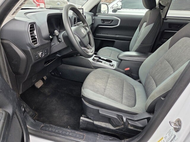 Bronco Sport Big Bend, 4D Sport Utility, 1.5L EcoBoost, 8-Speed Automatic, 4WD, Oxford White, Medium Dark Slate Cloth, 4-Wheel Disc Brakes, 6 Speakers, ABS brakes, Air Conditioning, Alloy wheels, AM/FM radio: SiriusXM, AM/FM Stereo, Auto High-beam Headlights, Automatic temperature control, Brake assist, Compass, Delay-off headlights, Driver door bin, Driver vanity mirror, Dual front impact airbags, Dual front side impact airbags, Electronic Stability Control, Emergency communication system: SYNC 3 911 Assist, Equipment Group 200A, Exterior Parking Camera Rear, Four wheel independent suspension, Front anti-roll bar, Front Bucket Seats, Front Center Armrest, Front fog lights, Front reading lights, Fully automatic headlights, Heated door mirrors, Illuminated entry, Knee airbag, Low tire pressure warning, Occupant sensing airbag, Outside temperature display, Overhead airbag, Overhead console, Panic alarm, Passenger door bin, Passenger vanity mirror, Power door mirrors, Power steering, Power windows, Radio data system, Rear anti-roll bar, Rear reading lights, Rear seat center armrest, Rear window defroster, Rear window wiper, Remote keyless entry, Roof rack: rails only, Security system, SiriusXM Radio, Speed control, Speed-sensing steering, Speed-Sensitive Wipers, Split folding rear seat, Steering wheel mounted audio controls, SYNC 3 Communications & Entertainment System, SYNC 3/Apple CarPlay/Android Auto, Tachometer, Telescoping steering wheel, Tilt steering wheel, Traction control, Trip computer, Unique Cloth Front Bucket Seats, Variably intermittent wipers, Wheels: 17 Carbonized Gray-Painted Aluminum.