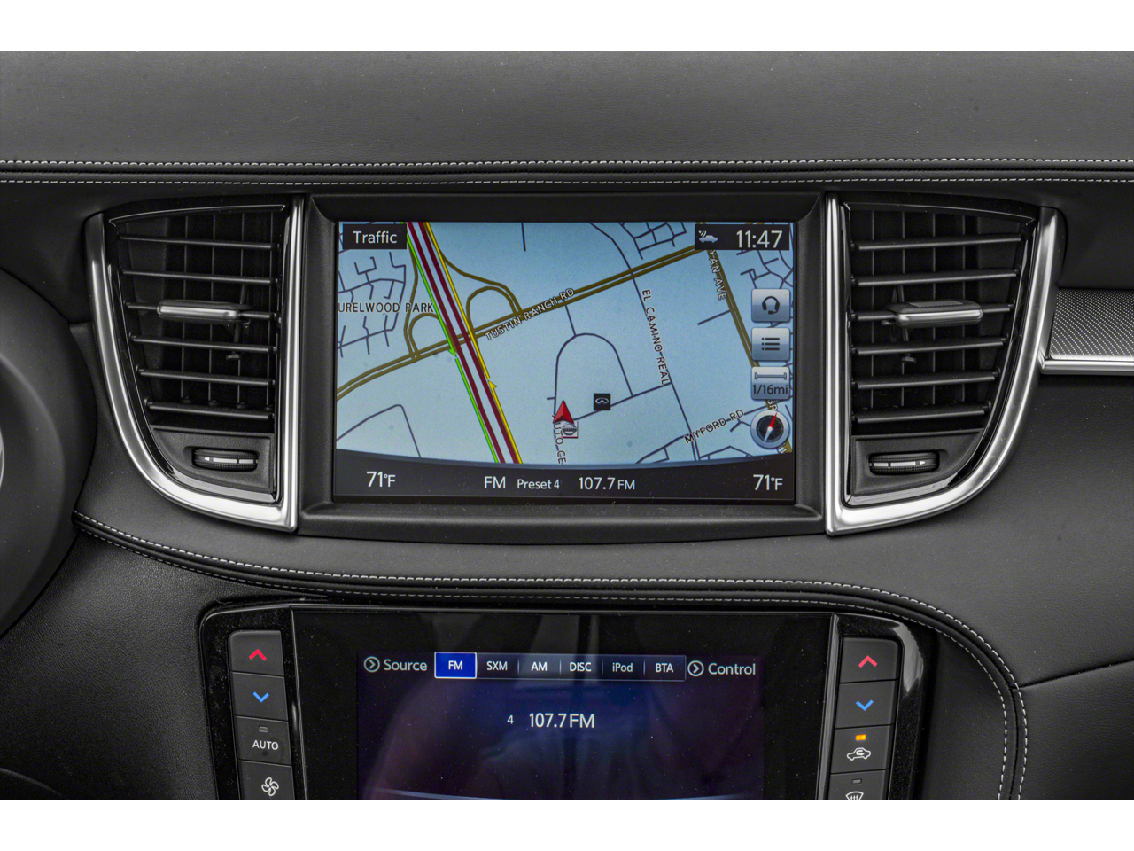 - Radio: AM/FM/CD Audio System -inc: 6 speakers, 4 USB connection ports, Apple CarPlay and Android Auto, dual display system w/upper 8" and lower 7" HD touch screens, INFINITI voice recognition, HD Radio technology, SiriusXM radio w/advanced audio features w/3-month complimentary trial, streaming audio via Bluetooth®, Bluetooth® hands-free phone system, Siri eyes free, hands-free text messaging assistant, active noise cancellation, WiFi hotspot, automatic collision notification and emergency call