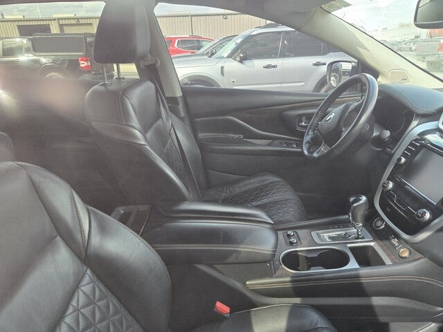 Murano Platinum, 4D Sport Utility, 3.5L V6 DOHC 24V, CVT with Xtronic, AWD, Mocha Leather, 11 Speakers, 4-Wheel Disc Brakes, ABS brakes, Air Conditioning, Alloy wheels, AM/FM radio: SiriusXM, AM/FM/CD/MP3/WMA Audio System, Auto High-beam Headlights, Auto tilt-away steering wheel, Auto-dimming Rear-View mirror, Automatic temperature control, Blind Spot Warning, Brake assist, Bumpers: body-color, CD player, Child-Seat-Sensing Airbag, Driver door bin, Driver vanity mirror, Dual front impact airbags, Dual front side impact airbags, Electronic Stability Control, Emergency communication system: NissanConnect Services (first 6 months included), Exterior Parking Camera Rear, Four wheel independent suspension, Front anti-roll bar, Front Bucket Seats, Front Center Armrest, Front dual zone A/C, Front fog lights, Front reading lights, Fully automatic headlights, Garage door transmitter: HomeLink, Heated & Ventilated Front Bucket Seats, Heated door mirrors, Heated front seats, Heated rear seats, Heated steering wheel, Illuminated entry, Knee airbag, Low tire pressure warning, Memory seat, Navigation system: NissanConnect Navigation, NissanConnect featuring Apple CarPlay and Android Auto, NissanConnect Services Powered By SiriusXM, Occupant sensing airbag, Outside temperature display, Overhead airbag, Overhead console, Panic alarm, Passenger door bin, Passenger vanity mirror, Power door mirrors, Power driver seat, Power Liftgate, Power moonroof, Power passenger seat, Power steering, Power windows, Radio data system, Rear anti-roll bar, Rear reading lights, Rear seat center armrest, Rear side impact airbag, Rear window defroster, Rear window wiper, Remote keyless entry, Roof rack: rails only, Security system, Semi-Aniline Leather-Appointed Seat Trim, Speed control, Speed-sensing steering, Speed-Sensitive Wipers, Split folding rear seat, Spoiler, Steering wheel memory, Steering wheel mounted audio controls, Tachometer, Telescoping steering wheel, Tilt steering wheel, Traction control, Trip computer, Turn signal indicator mirrors, Variably intermittent wipers, Ventilated front seats, Wheels: 20 Dark Hyper Silver.