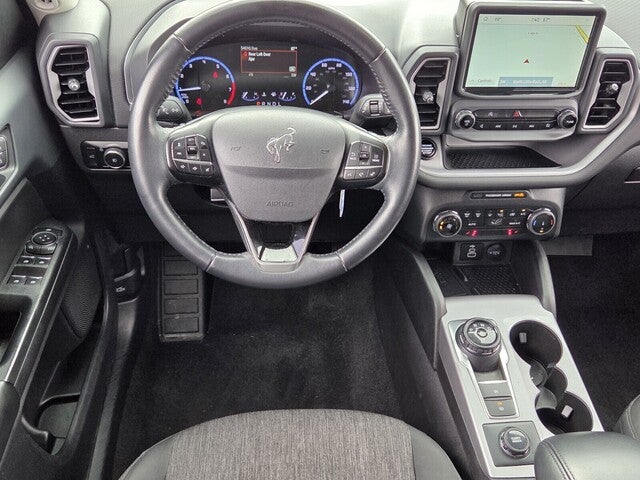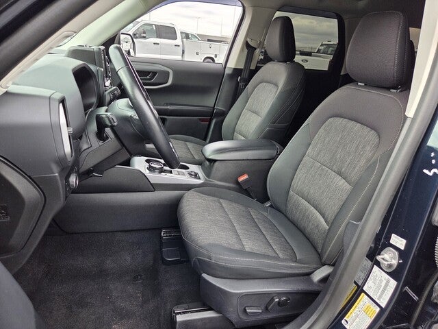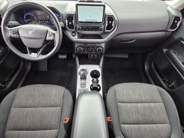 Bronco Sport Big Bend, 4D Sport Utility, 1.5L EcoBoost, 8-Speed Automatic, 4WD, Alto Blue Metallic Tinted Clearcoat, Ebony Cloth, 4-Wheel Disc Brakes, 6 Speakers, ABS brakes, Air Conditioning, Alloy wheels, AM/FM radio: SiriusXM, AM/FM Stereo, Auto High-beam Headlights, Automatic temperature control, Brake assist, Cargo Management System, Class II Trailer Tow Package w/Trailer Sway Control, Compass, Convenience Package, Delay-off headlights, Driver door bin, Driver vanity mirror, Dual front impact airbags, Dual front side impact airbags, Electronic Stability Control, Emergency communication system: SYNC 3 911 Assist, Equipment Group 200A, Evasive Steering Assist, Ford Co-Pilot360 Assist+, Four wheel independent suspension, Front anti-roll bar, Front Bucket Seats, Front Center Armrest, Front Driver & Passenger Seatback Zipper Pockets, Front License Plate Bracket, Front reading lights, Fully automatic headlights, Heated door mirrors, Heated Front Bucket Seats, Illuminated entry, Intelligent Access (Lock/Unlock), Intelligent Adaptive Cruise Control w/Stop & Go, Knee airbag, Leather-Wrapped Steering Wheel, LED Fog Lamps, Low tire pressure warning, Occupant sensing airbag, Outside temperature display, Overhead airbag, Overhead console, Panic alarm, Passenger door bin, Passenger vanity mirror, Power door mirrors, Power Moonroof, Power steering, Power windows, Radio data system, Rear anti-roll bar, Rear Parking Sensors, Rear reading lights, Rear seat center armrest, Rear window defroster, Rear window wiper, Remote keyless entry, Security system, SiriusXM, Speed control, Speed-sensing steering, Speed-Sensitive Wipers, Split folding rear seat, Steering wheel mounted audio controls, SYNC 3 Communications & Entertainment System, SYNC 3/Apple CarPlay/Android Auto, Tachometer, Telescoping steering wheel, Tilt steering wheel, Traction control, Trip computer, Unique Cloth Front Bucket Seats, Universal Garage Door Opener (UGDO), Variably intermittent wipers, Voice-Activated Touchscreen Navigation System, Wheels: 17 Carbonized Gray-Painted Aluminum, Wireless Charging Pad.