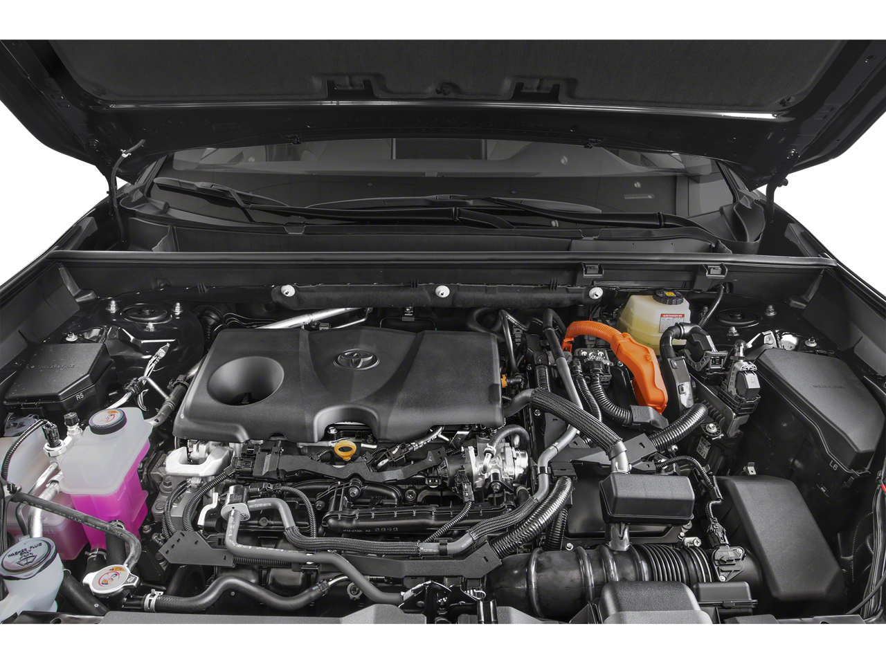 Boasting a sleek black exterior, the RAV4 Hybrid XLE commands attention on the road. Under the hood, the 2.5L 4-cylinder engine and eCVT transmission deliver an impressive 41 MPG in the city and 38 MPG on the highway, ensuring exceptional fuel efficiency and reduced environmental impact.